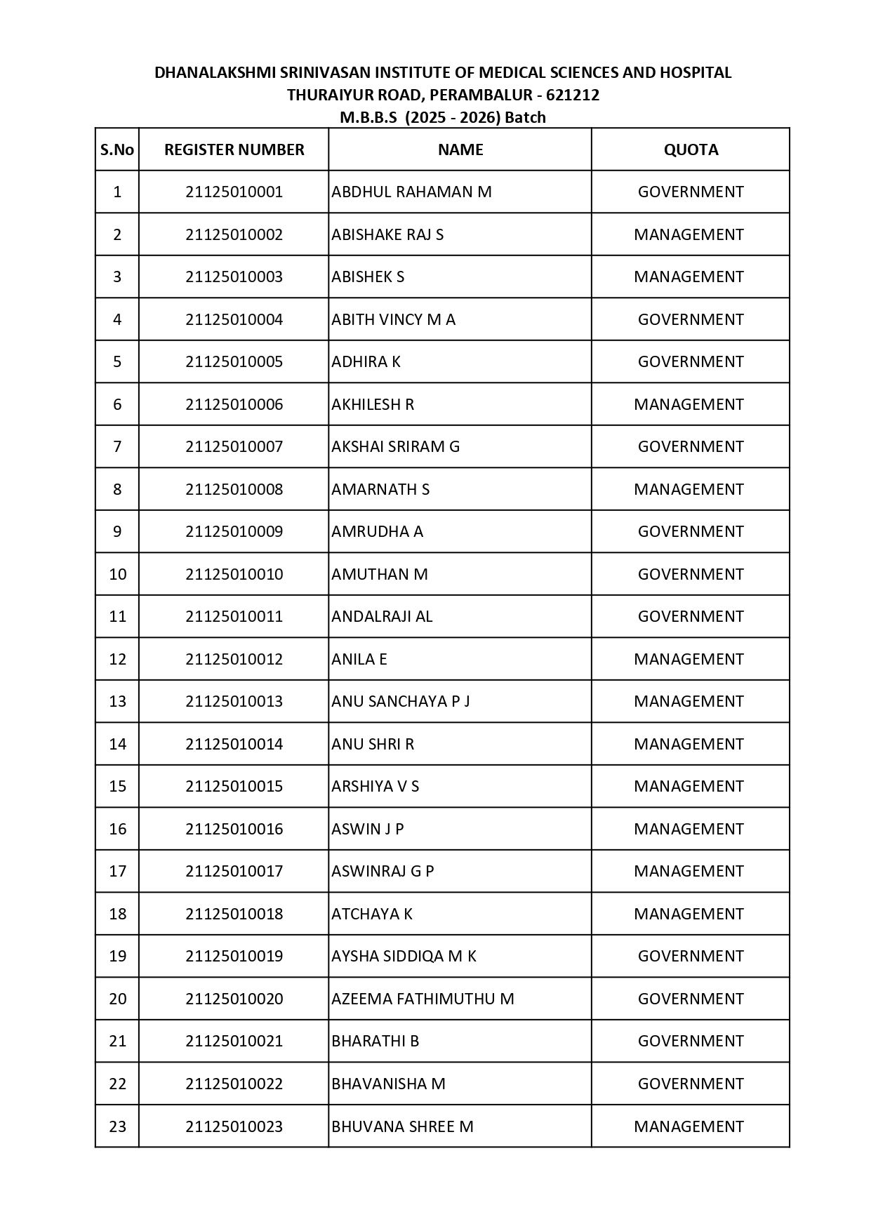 List of UG M.B.B.S Students admitted in the Academic Year 2025 2026