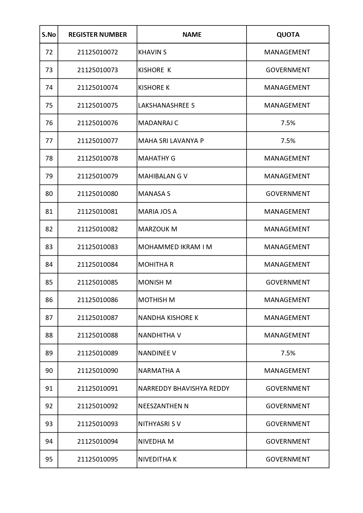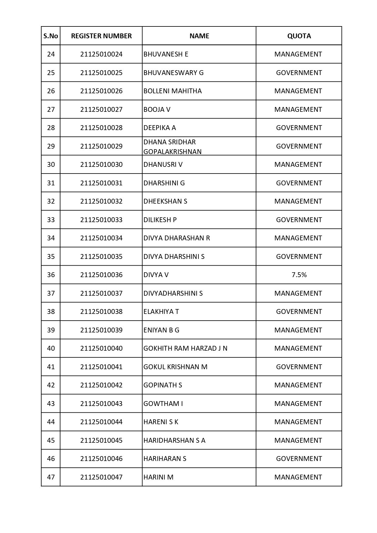 List of UG M.B.B.S Students admitted in the Academic Year 2024 2025